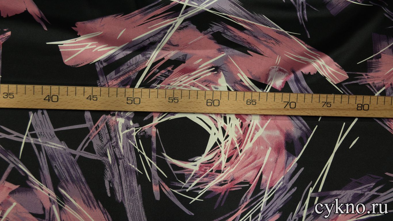 Атлас принт пыльно-розовая абстракция на черном