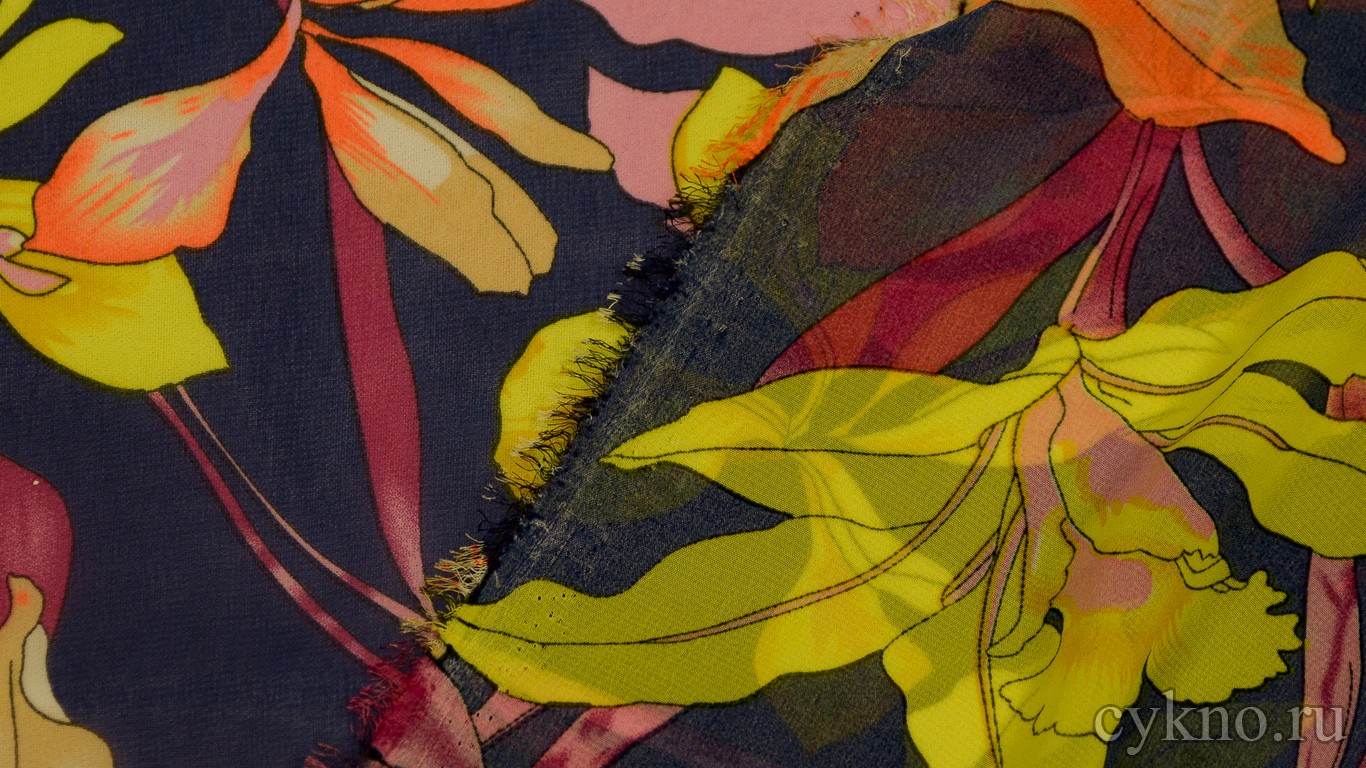 Шифон Набивной "Желтые лилии"