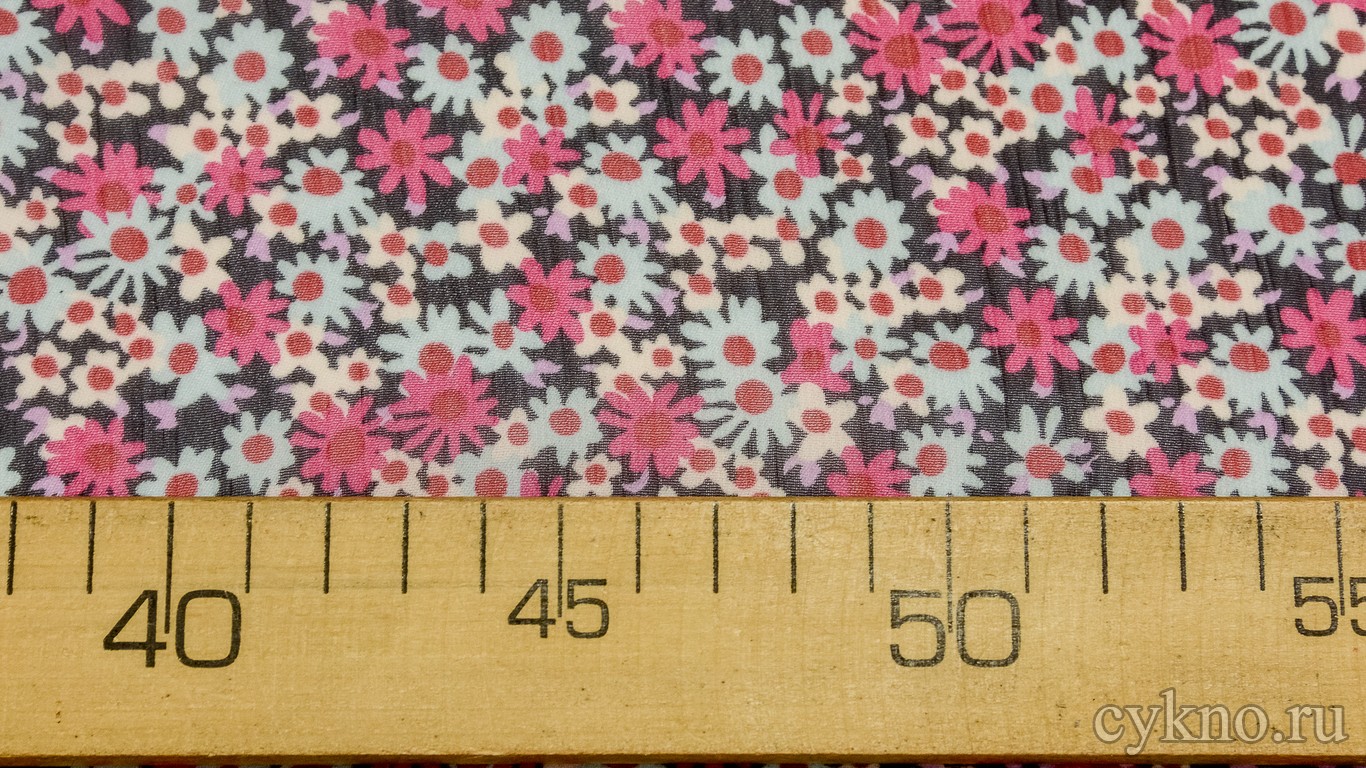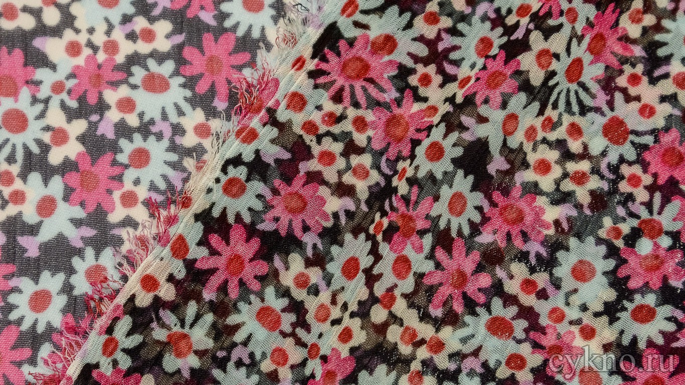 Шифон Набивной "Розово-бирюзовые цветы"