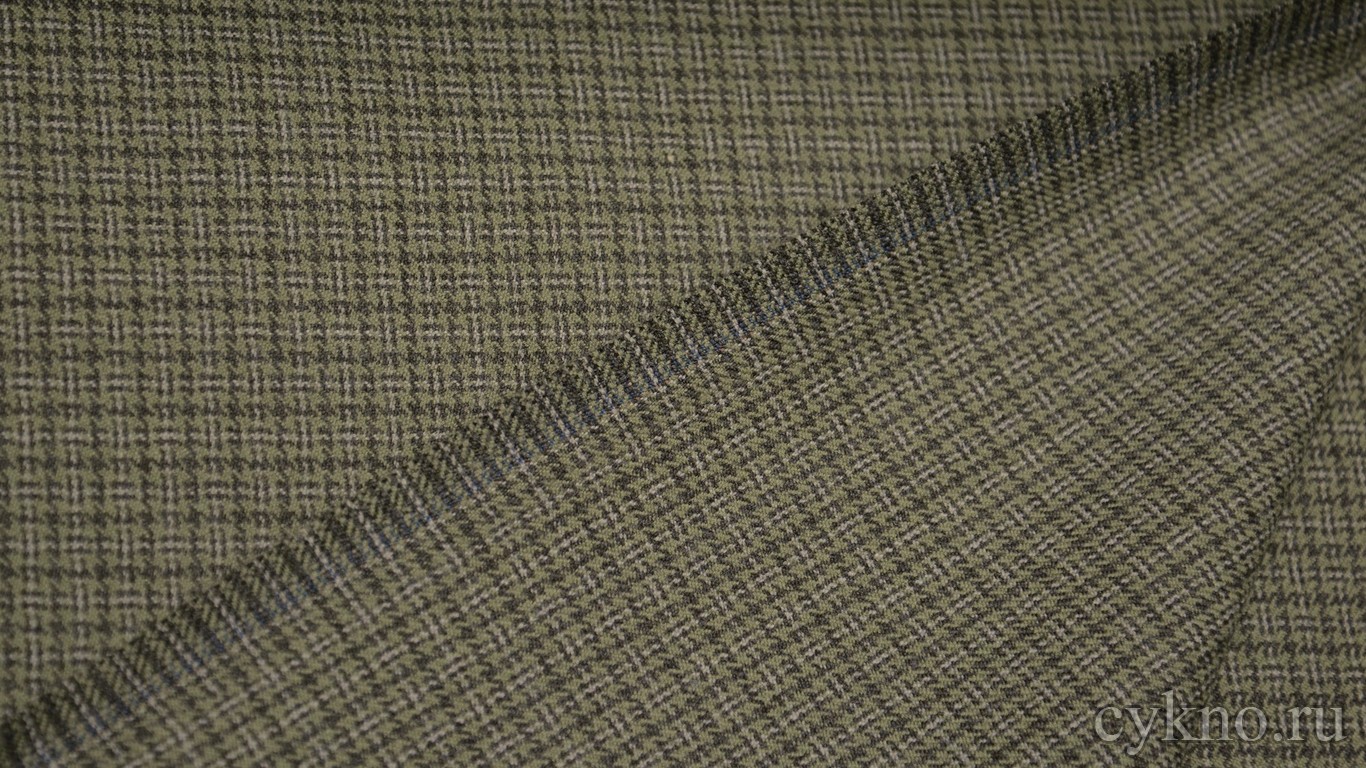 Шерсть Костюмная светло-зеленого цвета в мелкую клетку
