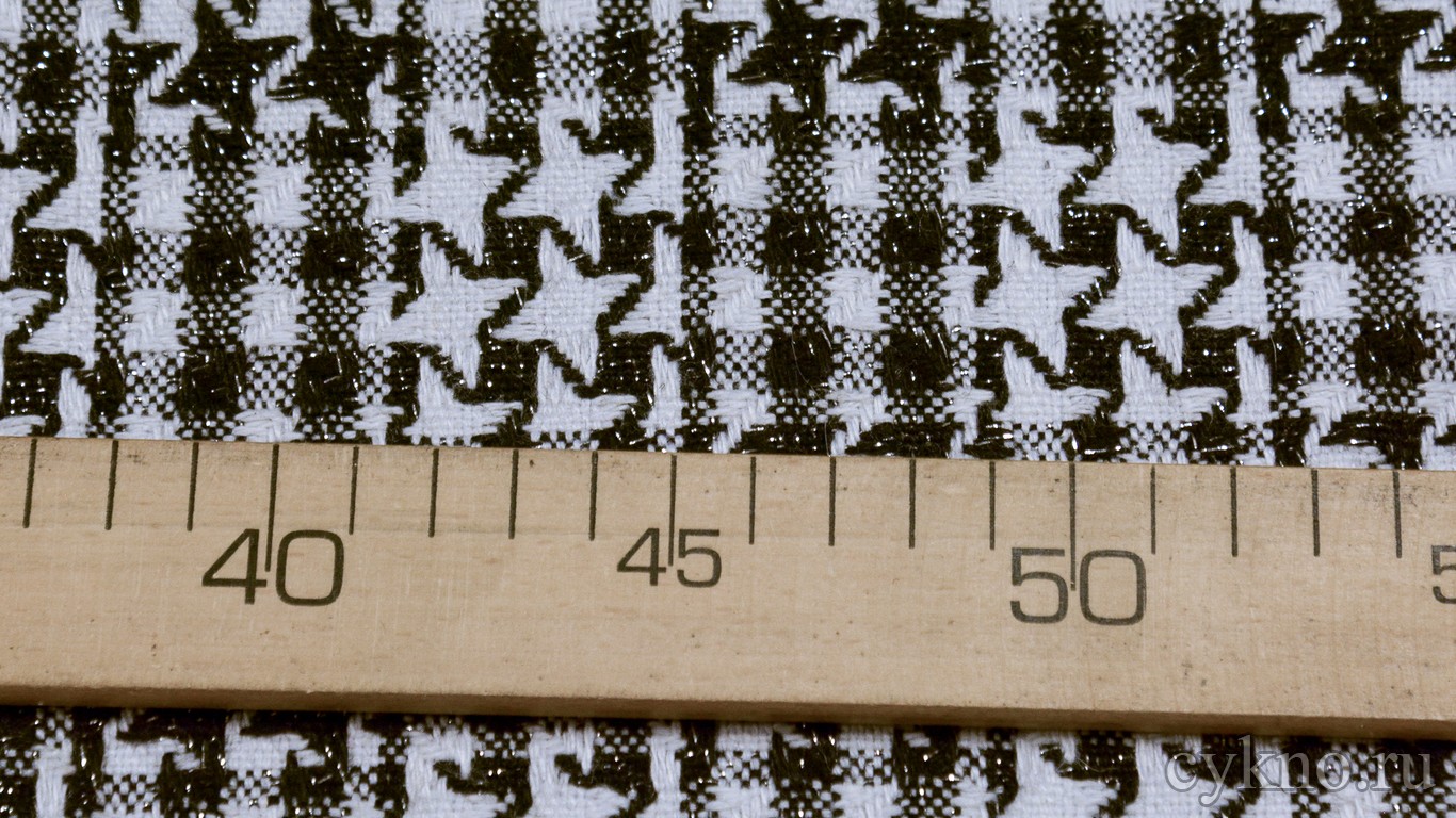 Ткань Пальтовая звезды черно-белые с люрексом